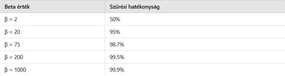 Hatékonyság (%) = (1 - 1/β) × 100